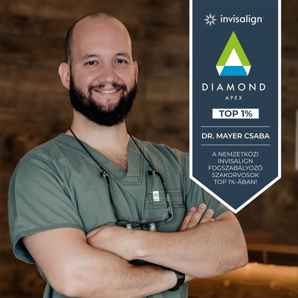 A Diamond Apex elismerés azt jelenti, hogy dr. Mayer Csaba szakorvosunk azon szakemberek e kiválasztott csoportjába tartozik, akik a legtöbb láthatatlan fogszabályozó kezelést végzik eredményesen.