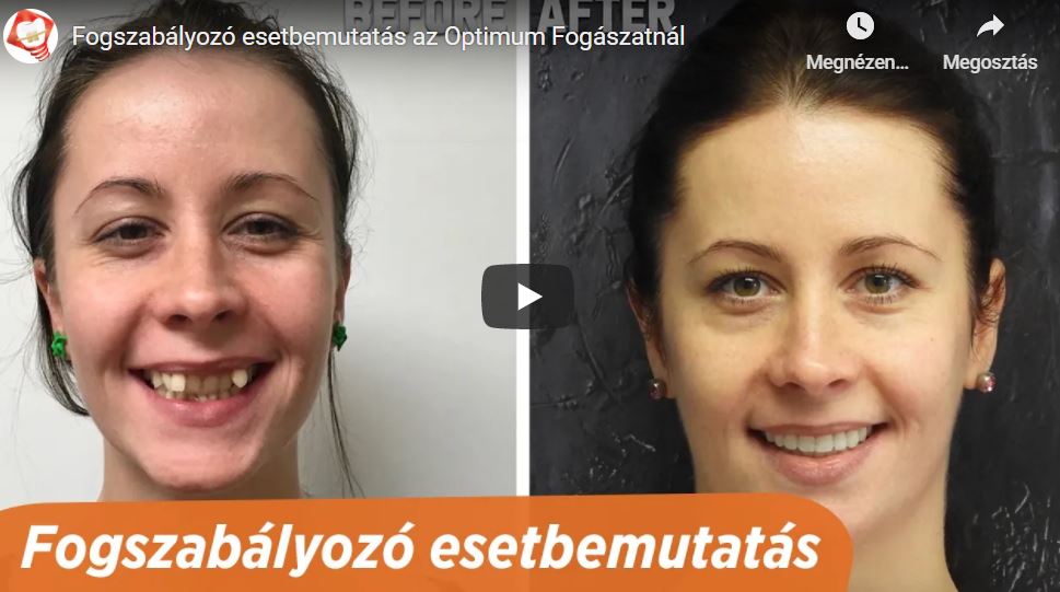 Kezelési idő: 14 hónap Nagyon sokan fordulnak a kiálló felső szemfogak problémájával hozzánk, mert rendkívül előnytelenné teszi a mosolyt. Szerencsére könnyen tudunk rajta segíteni, a megfelelő rögzített fogszabályozó kiválasztása után